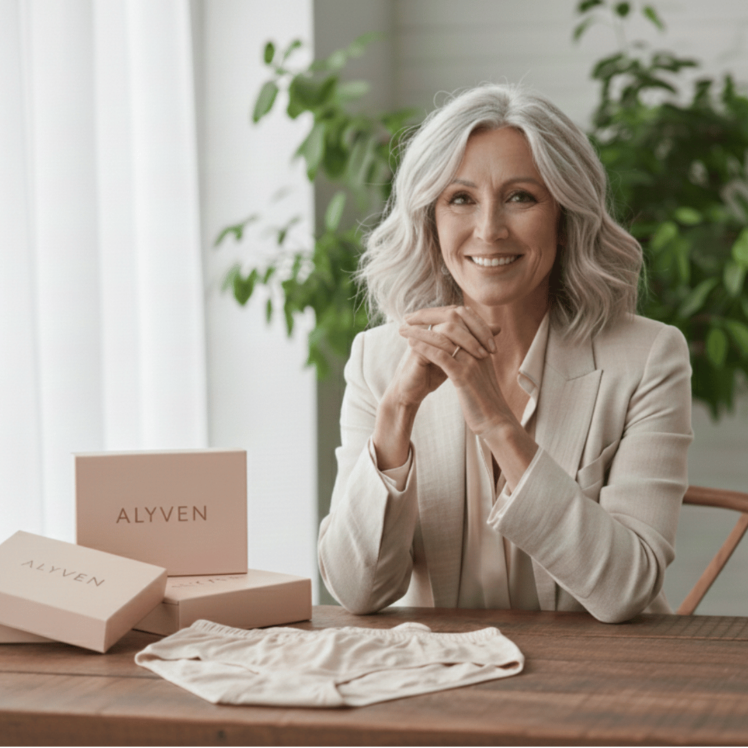 Alyven is bladder-leak-specific — built with breathable absorbency and skin-safe tech to finally solve this for real.